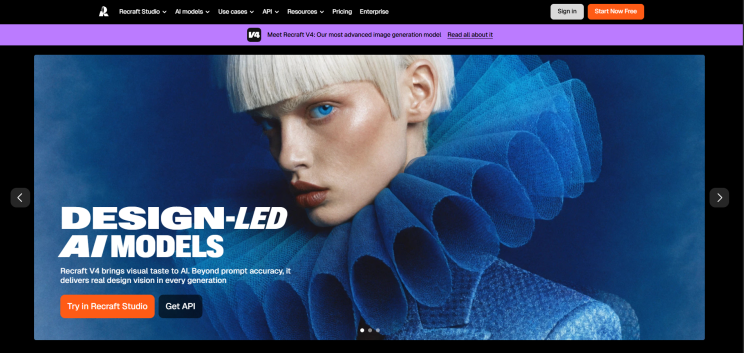 Recraft V4 es el primer modelo que alcanza estándares de diseño profesional sin retoque posterior. Tipografía precisa, control de estilo real, todo por cuatro centavos vía API.